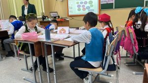 Сабақтағы балалар топтық жұмыс кезінде жақсы білім мен ұйымшылдықты көрсетті.